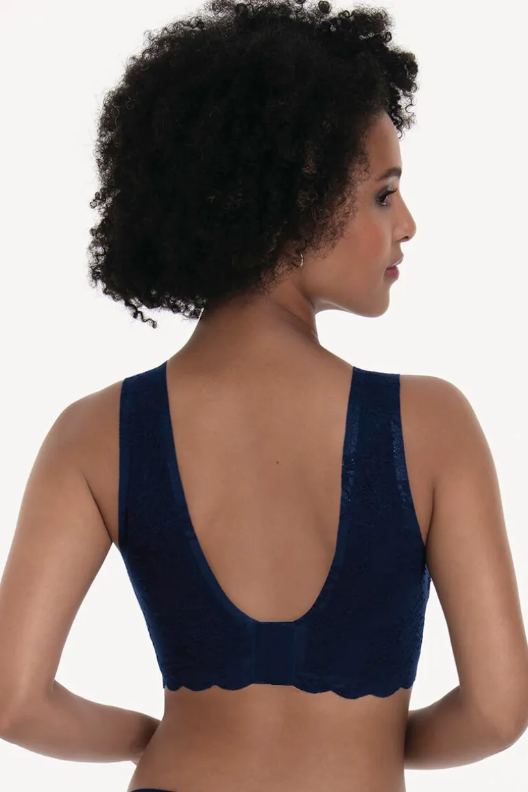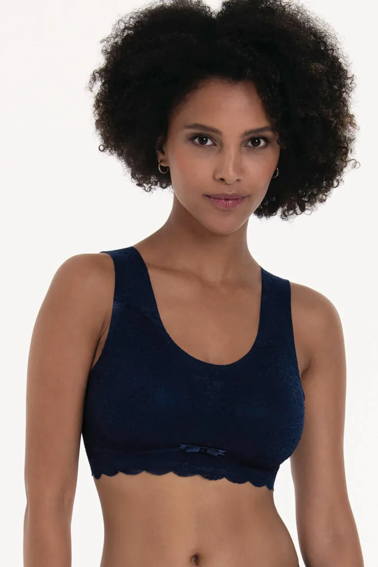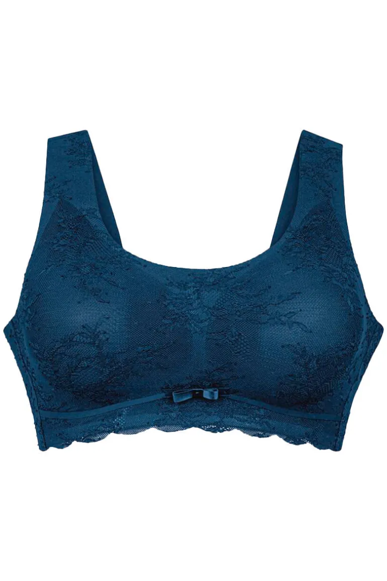 Dit is de Bralette Anita Essentials Lace Marineblauw. Deze ultracomfortabele bralette met uitneembare schuimschalen bieden een perfect comfort. De schalen zijn licht gepolsterd en ademend door fijne gaatjes in het schuim. Door de brede schouderbanden ervaar je extra versteviging op de schouders. Deze BH sluit prachtig aan op je lichaam en kleed mooi af door de brede rugband. Extra mooi is de kanten look!