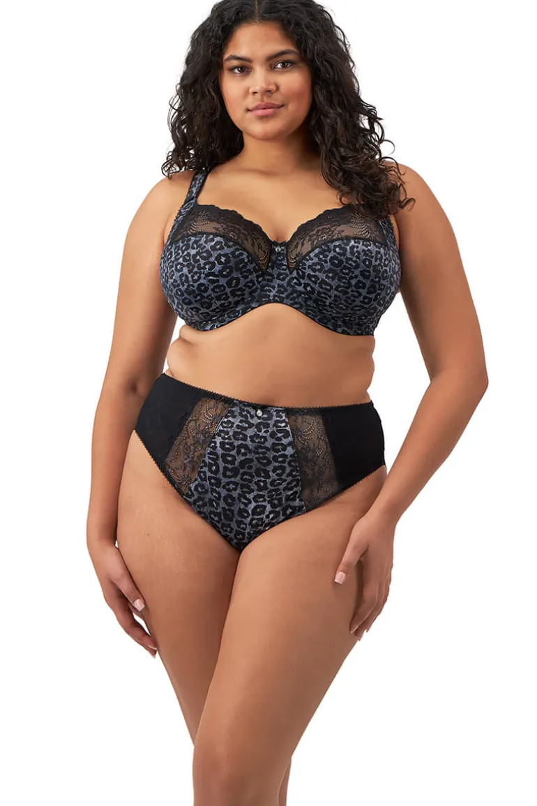 De Elomi Morgan Hele cup BH Snow Leopard is uitgevoerd in een monochrome luipaardprint. Het bovenste gedeelte van de cup is afgewerkt met elastisch kant zodat de cup mooi aansluit op de borsten. De beugelBH is voorzien van een side support stuk in de cups. Dit zorgt ervoor dat de borsten goed naar het midden van het lichaam worden gebracht. Deze BH zorgt niet alleen voor een perfecte pasvorm en voldoende steun,maar ook voor een slanker silhouet. De cups zijn langs de oksels elastisch zodat de BH mooi aansluit. Maak je set compleet met een bijpassende slip.