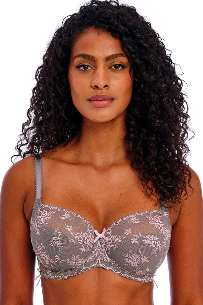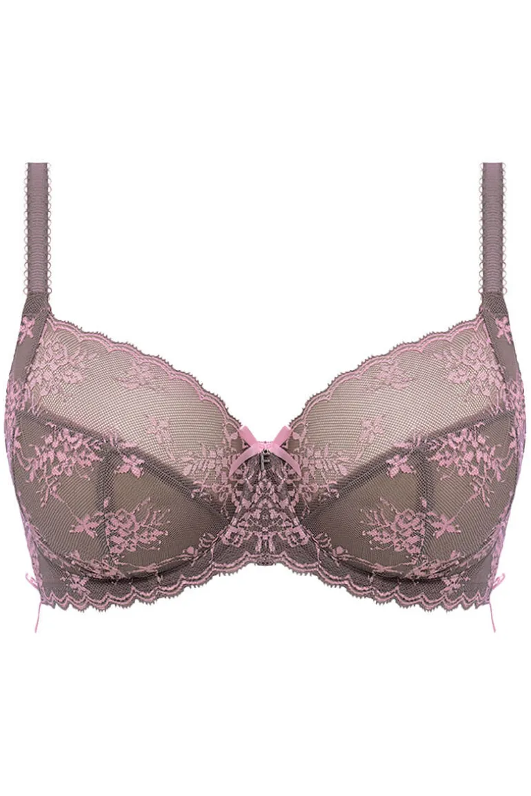 De Freya Offbeat Decadence hele cup BH Grey Pink is uitgevoerd in grijs met roze kanten accenten. Door de side support in deze beugelBH krijgen de borsten een extra lift, wat resulteert in een slanker silhouet en extra comfort. De prachtige kanten afwerking voegt luxe toe aan deze BH. Leuk te combineren met twee bijpassende slips uit de Freya Offbeat Decadence collectie Grey Pink.