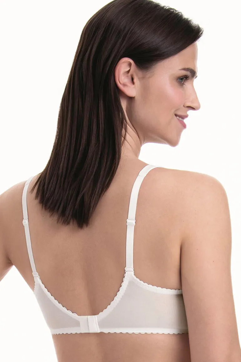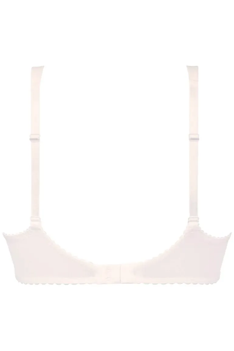 De Rosa Faia Sita Hele cup BH is uitgevoerd in ivoor. Met zijn mix van chique strepen en kant, straalt deze bh pure vrouwelijkheid uit. Dankzij de driedelige cups en beugel biedt deze bh niet alleen een perfecte pasvorm, maar ook comfortabele ondersteuning. Ook zorgt deze BH ervoor dat je borsten subtiel vanaf de zijkant naar voren worden geduwd. De schouderbanden passen zich aan naarmate de grootte van de cups. Mooi detail zijn de goudkleurige sierringen aan het begin van de schouderbandjes.