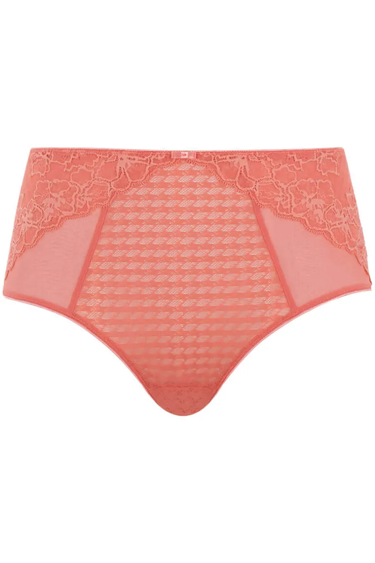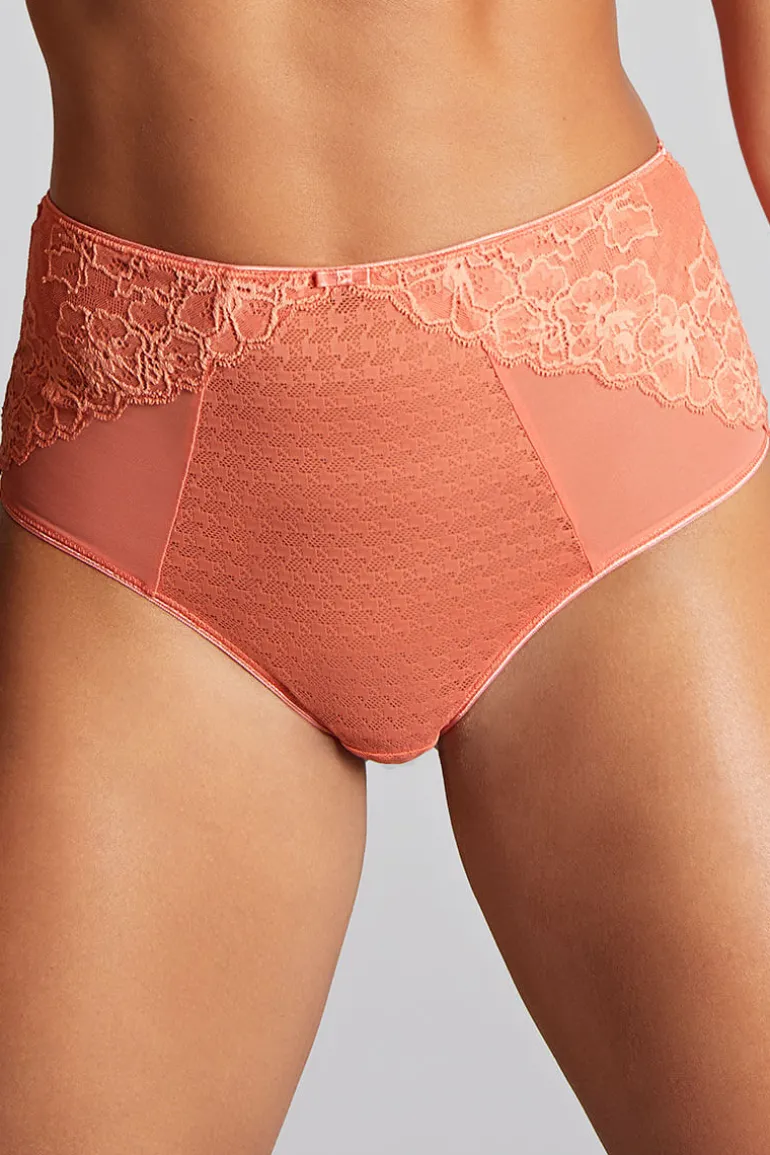 De Panache High Waist Brazilian Envy Terracotta is uitgevoerd in volledig kant in de kleur terracotta. Combineer deze slip met de bijpassende balconnet BH uit dezelfde serie. De slip is semi-transparant en voorzien van een katoenen kruisje voor extra comfort.