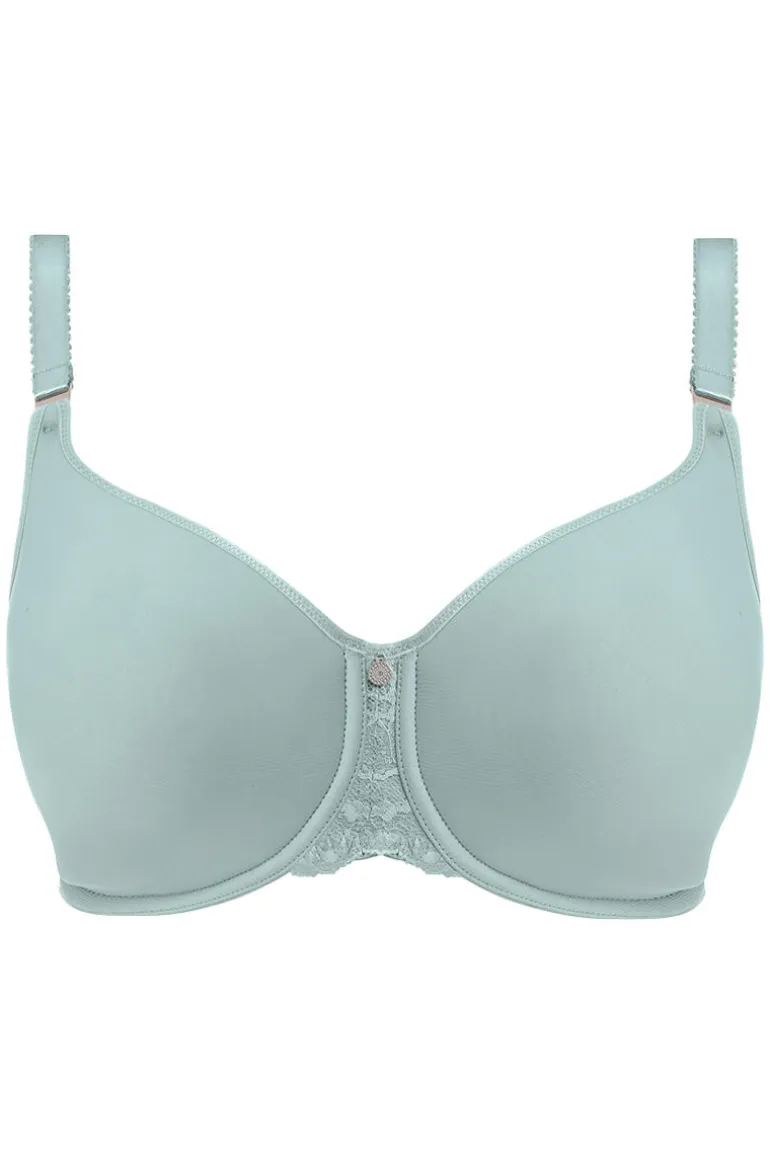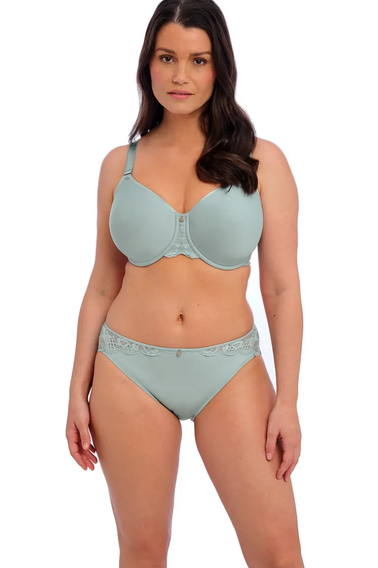De Fantasie Reflect Voorgevormde BH Mist is uitgevoerd in een zachte groene kleur. Deze BH is gemaakt van spacer, een dubbele laag stof met daartussen een luchtlaag. Hierdoor zijn de cups bijna gewichtloos, ademend en mooi glad. Tussen de cups zit kant verwerkt. Leuk te combineren met het bijpassende slipje uit de Fantasie Reflect serie.