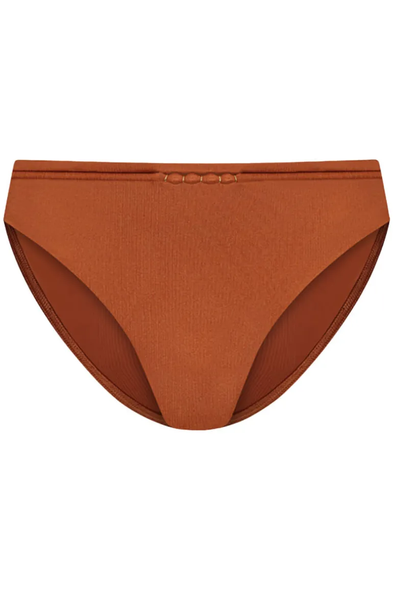 De Cyell Treasure Cedar bikinislip is uitgevoerd in een luxueuze satijnen stof in een warme brons kleur. Het bikinibroekje heeft een normale pasvorm en valt tot op het midden van de heupen.