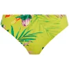De Fantasie Bikinislip Cala Macarella is uitgevoerd in een mix van kleurrijke passiebloemen op een gedurfde limoengroene achtergrond. Het broekje valt normaal en is volledig gevoerd.