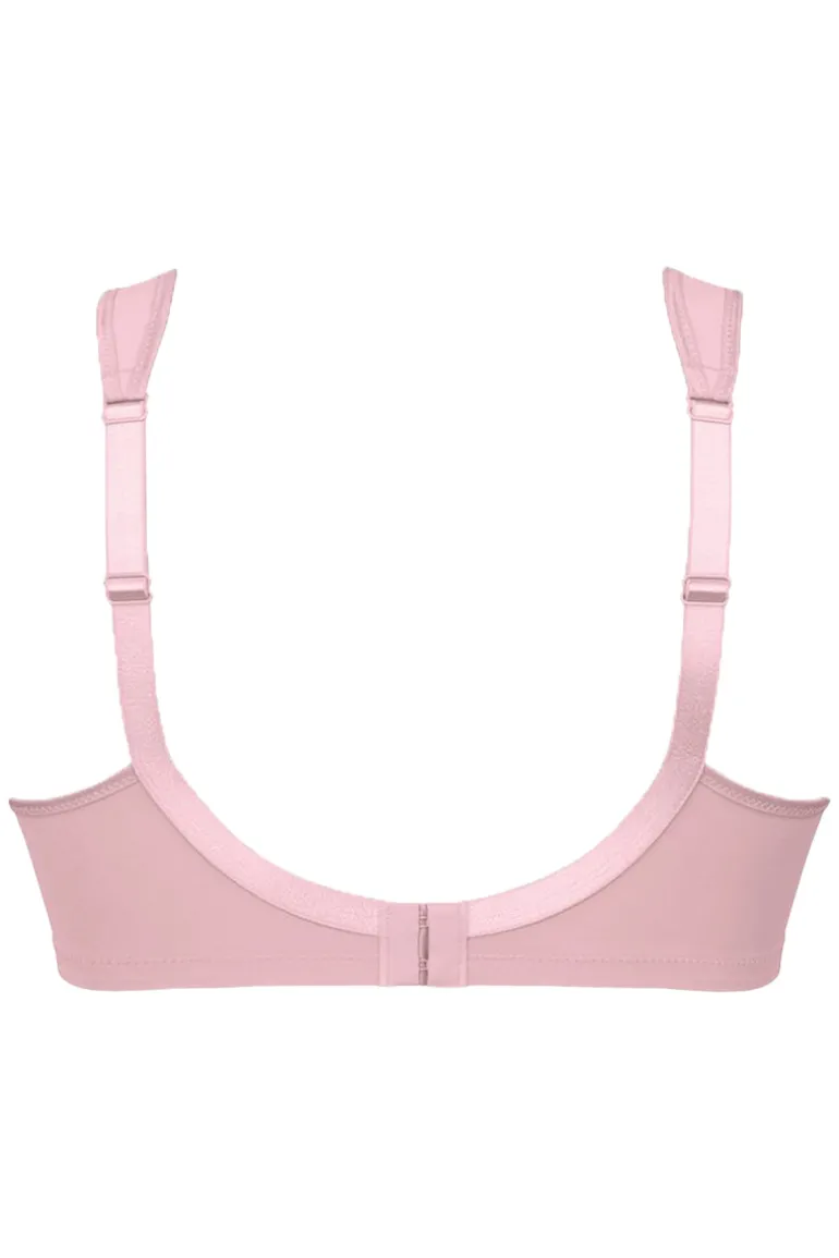 De Clara beugelloze BH van Anita is uitgevoerd in de kleur rosewood. Deze BH geeft niet alleen een goede ondersteuning aan de borsten, maar is daarnaast ook een prima basis BH door het bescheiden uiterlijk. Voor extra ondersteuning zijn de ondercups in grote maten dubbel verwerkt en worden de schouderbandjes en rugband bij toenemende maten breder. De BH is in het decolleté prachtig afgewerkt met een semitransparante inzet van dubbellaags voile.