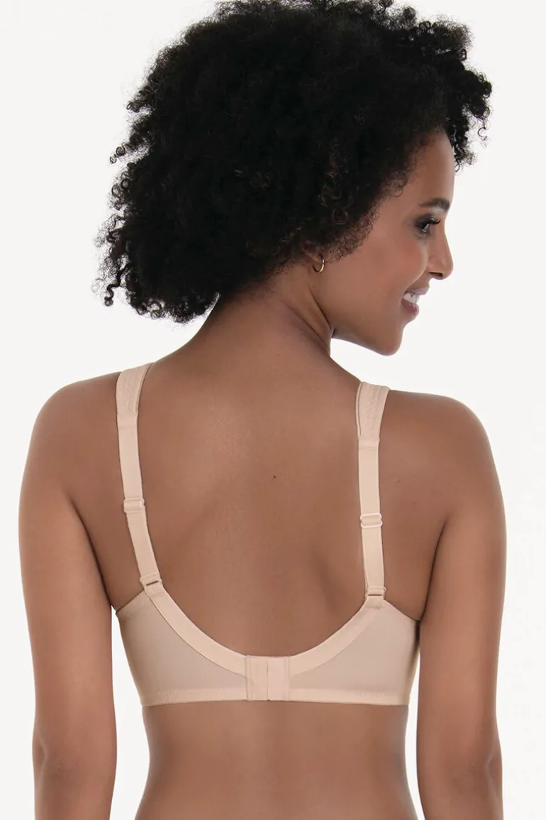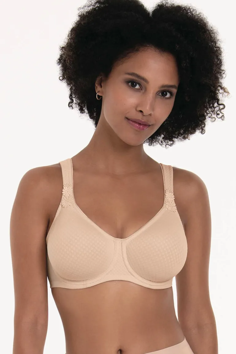 De Anita Leni Hele cup BH Smart Rose in een lichtroze jacquard stof. Deze BH tekent niet af onder nauwsluitende kleding dankzij de naadloze dubbellaagse cups. Door het licht elastische materiaal in de cups sluit de Leni beugelBH altijd mooi aan, ook als je borsten niet geheel gelijk zijn. Deze BH is niet voorgevormd. Een extra cup steun is ingebracht voor de grotere maten. De schouderbanden zijn extra breed en versterkt voor meer comfort. Gebaseerd op de Rosa Faia Twin.