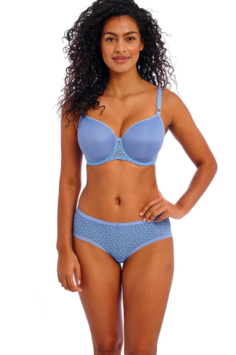 Het Freya Starlight Short in Cornflower is uitgevoerd in een prachtige kleur pastelblauw. De stof is verfraaid met een subtiel ingeweven bolletjespatroon en wordt aangevuld met een charmant klein strikje aan de bovenkant. Het kruisje van de short is gemaakt van katoen.
