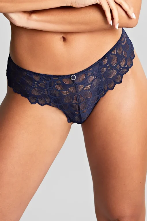 De Panache Allure slip Navy is uitgevoerd in prachtig kant in de kleur donkerblauw. De slip is semi-transparant en heeft een katoenen kruisje. Combineer deze slip met de hele cup BH uit de Panache Allure collectie.
