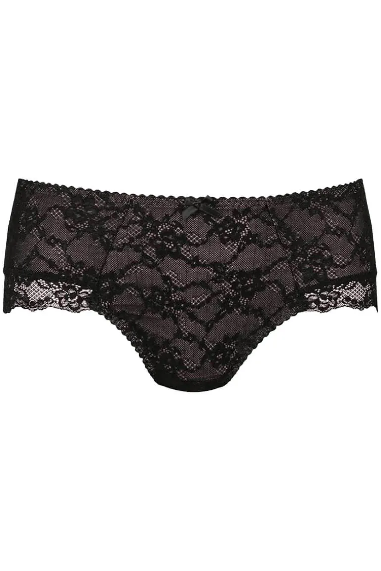De Bobette slip van Rosa Faia is uitgevoerd in de kleur zwart. Deze slip is gemaakt van stevig elastisch materiaal. De voorkant van de slip is versierd met kant. Het kruisje is van katoen.