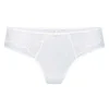 Witte string uit de serie van Rosa Faia Selma. Deze string in de kleur witte is gemaakt van stevig, glad materiaal. De voorkant van de slip is versierd met fijn borduurwerk op semi-transparante tule. Het kruisje is van katoen.